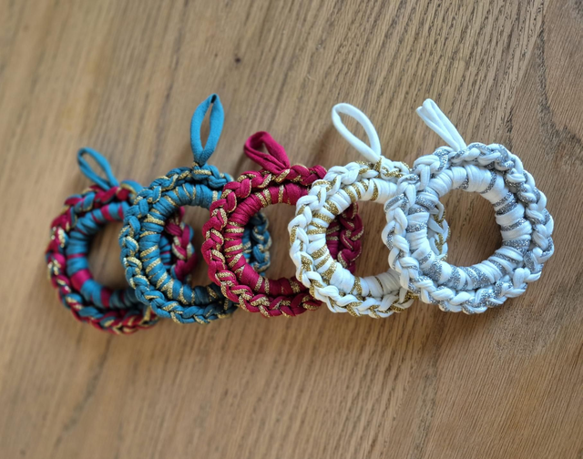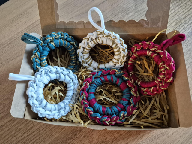 Chaque couronne est entièrement faite à la main en crochet, ce qui en fait une décoration unique, durable et réutilisable d’année en année.